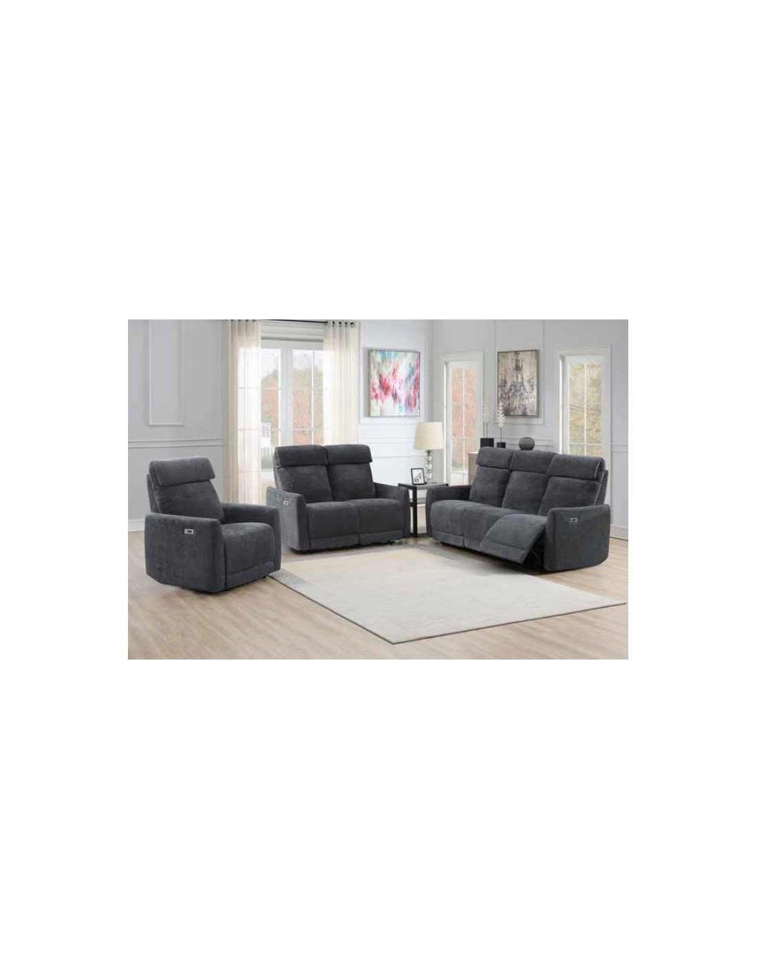Zubaida 3 Seater Electric Recliner Sofa - Dark Grey