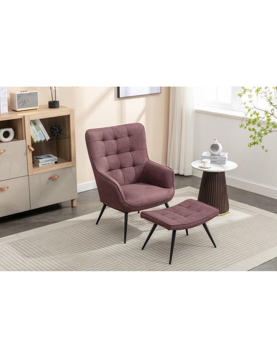 Katelyn Accent Chair with Stool - Mulberry