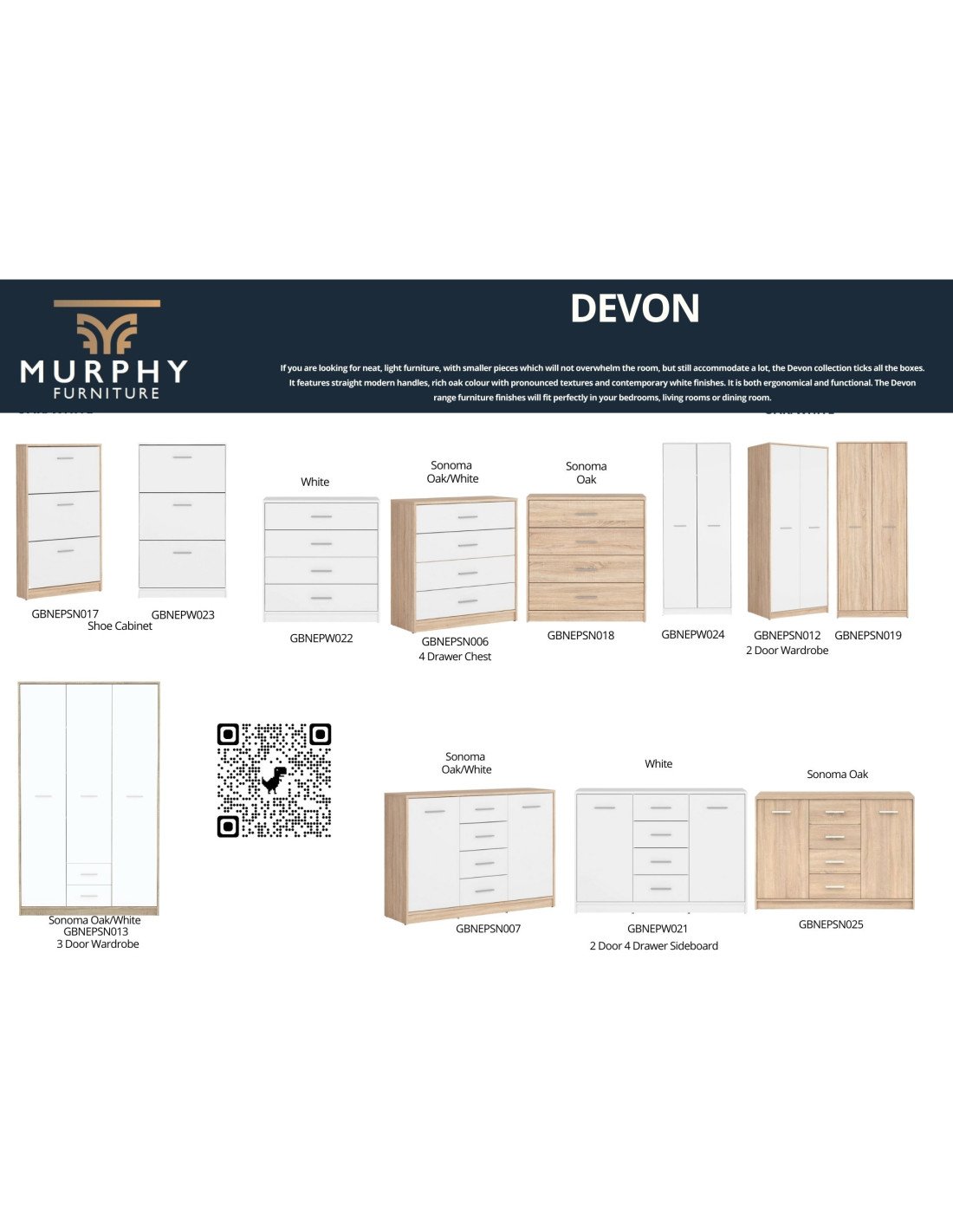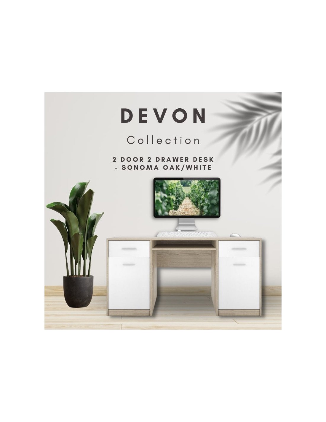 Devon 2 Door 2 Drawer Desk - Sonoma Oak/White