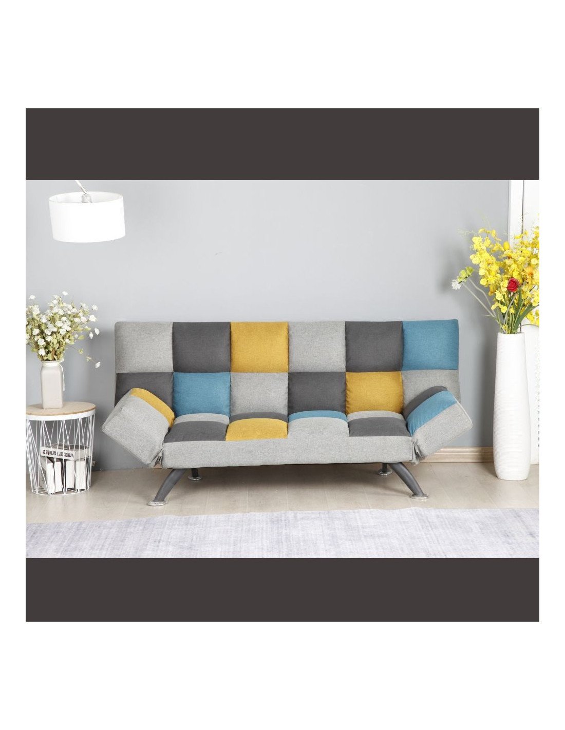 Milburn Sofa Bed - Yellow/Blue Patchwork