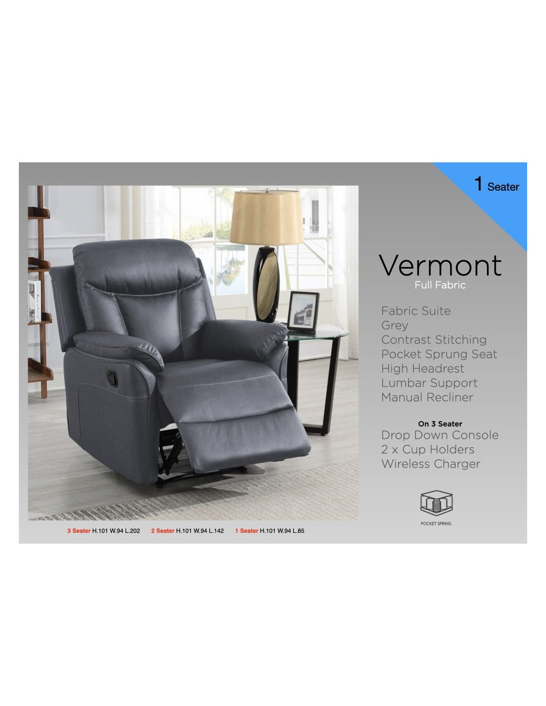 Vermont 3+1+1 Sofa Set - Grey