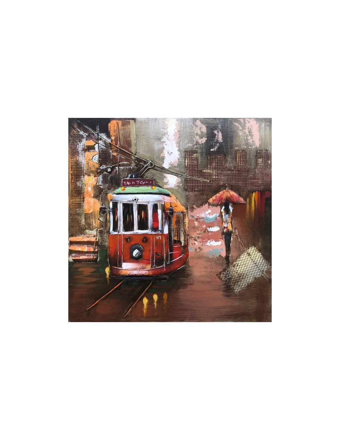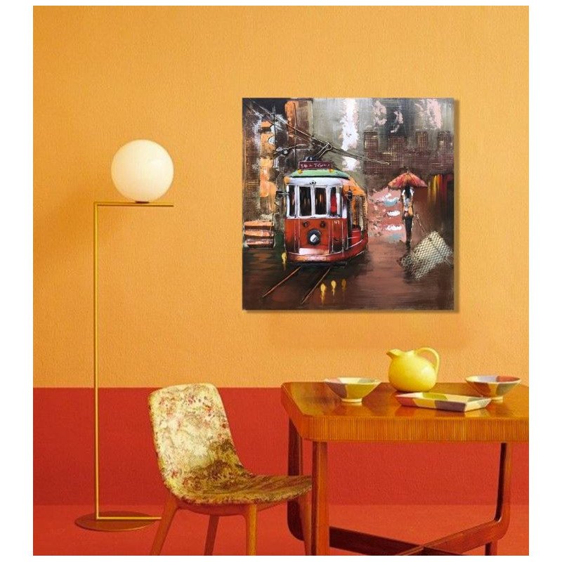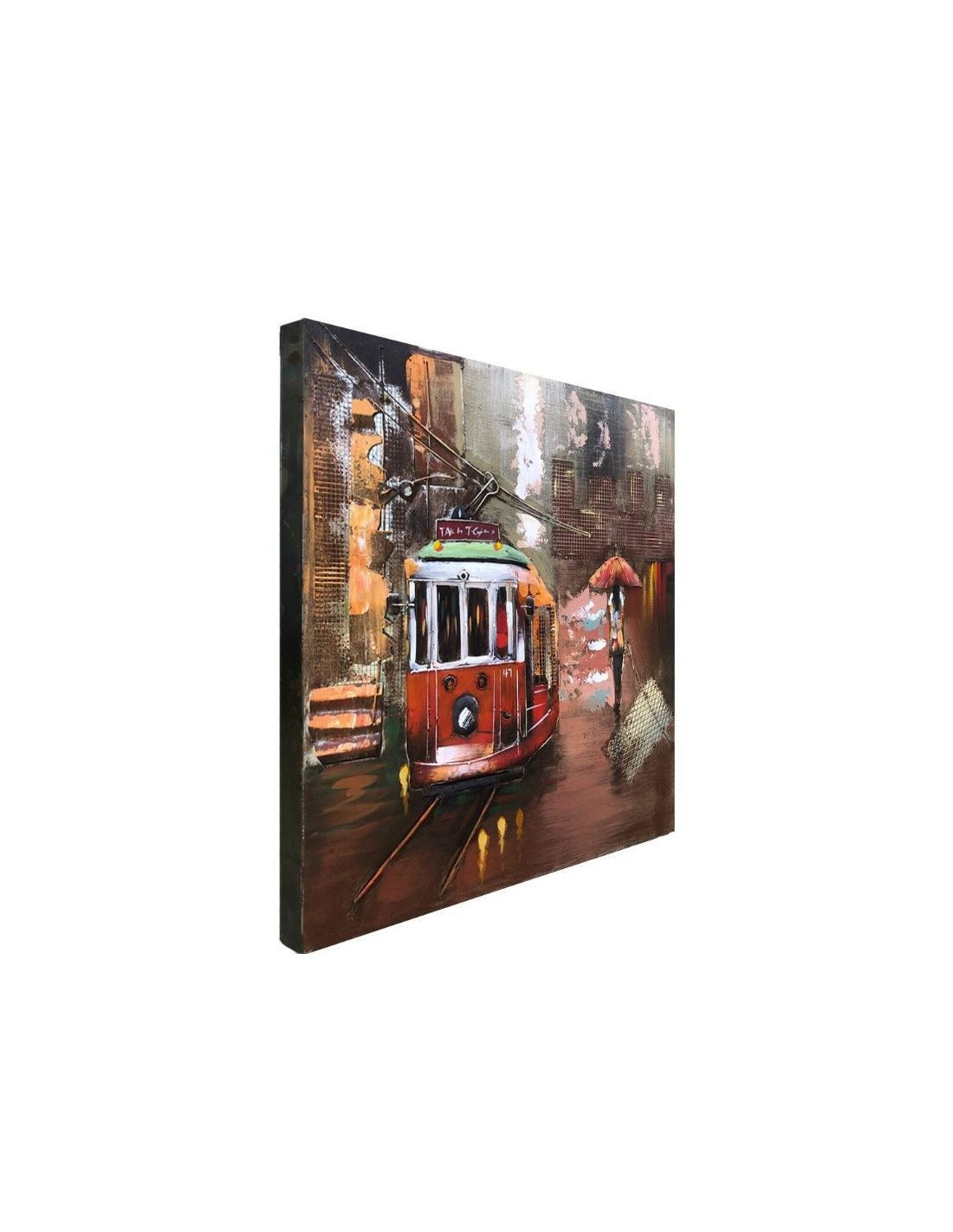 3D Metal and Wood Wall Picture - City Streetcar Scene