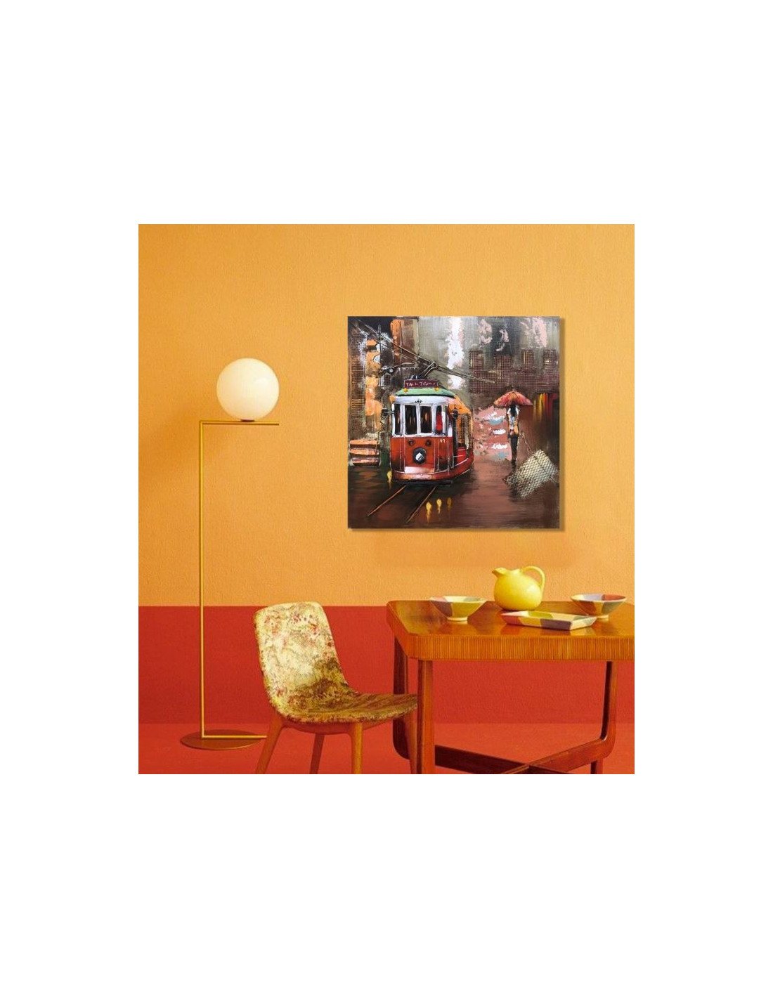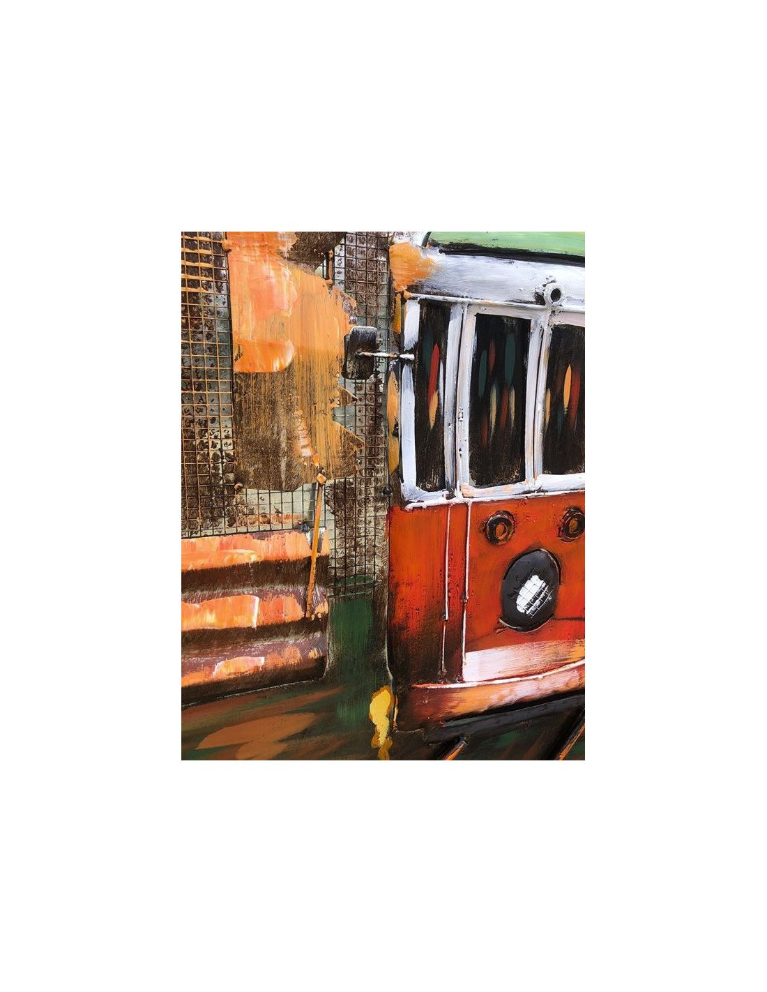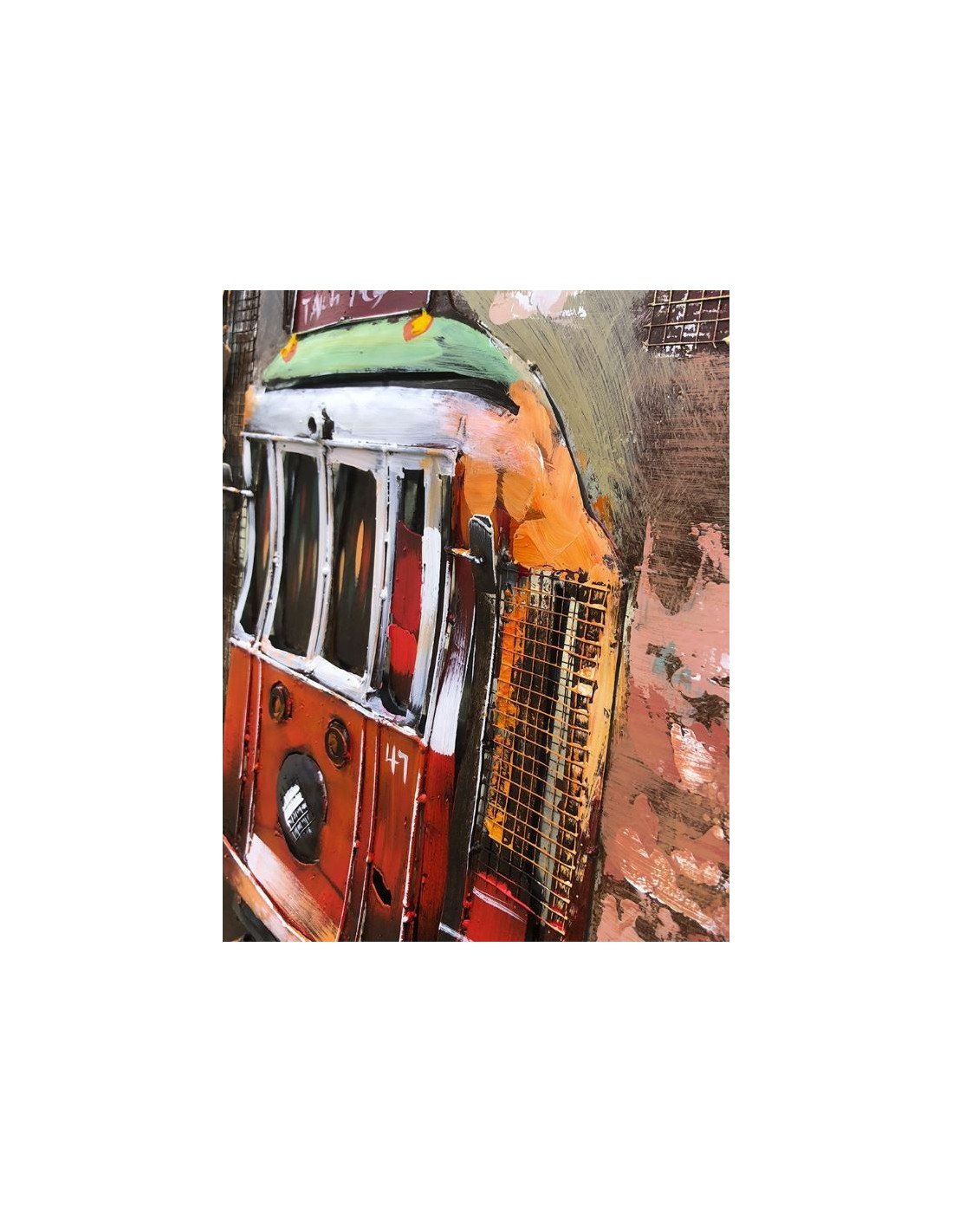 3D Metal and Wood Wall Picture - City Streetcar Scene